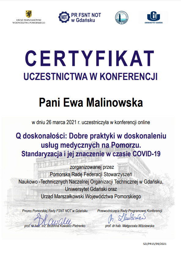 W dniu 21 czerwca 2022 roku odbyła się IV Konferencja Naukowa pt. Q DOSKONAŁOŚCI: dobre praktyki w doskonaleniu usług medycznych na Pomorzu 2022. Konferencja była współorganizowana przez Naczelną Organizację Techniczną w Gdańsku, Uniwersytet Gdański oraz Wojewódzki Ośrodek Medycyny Pracy.